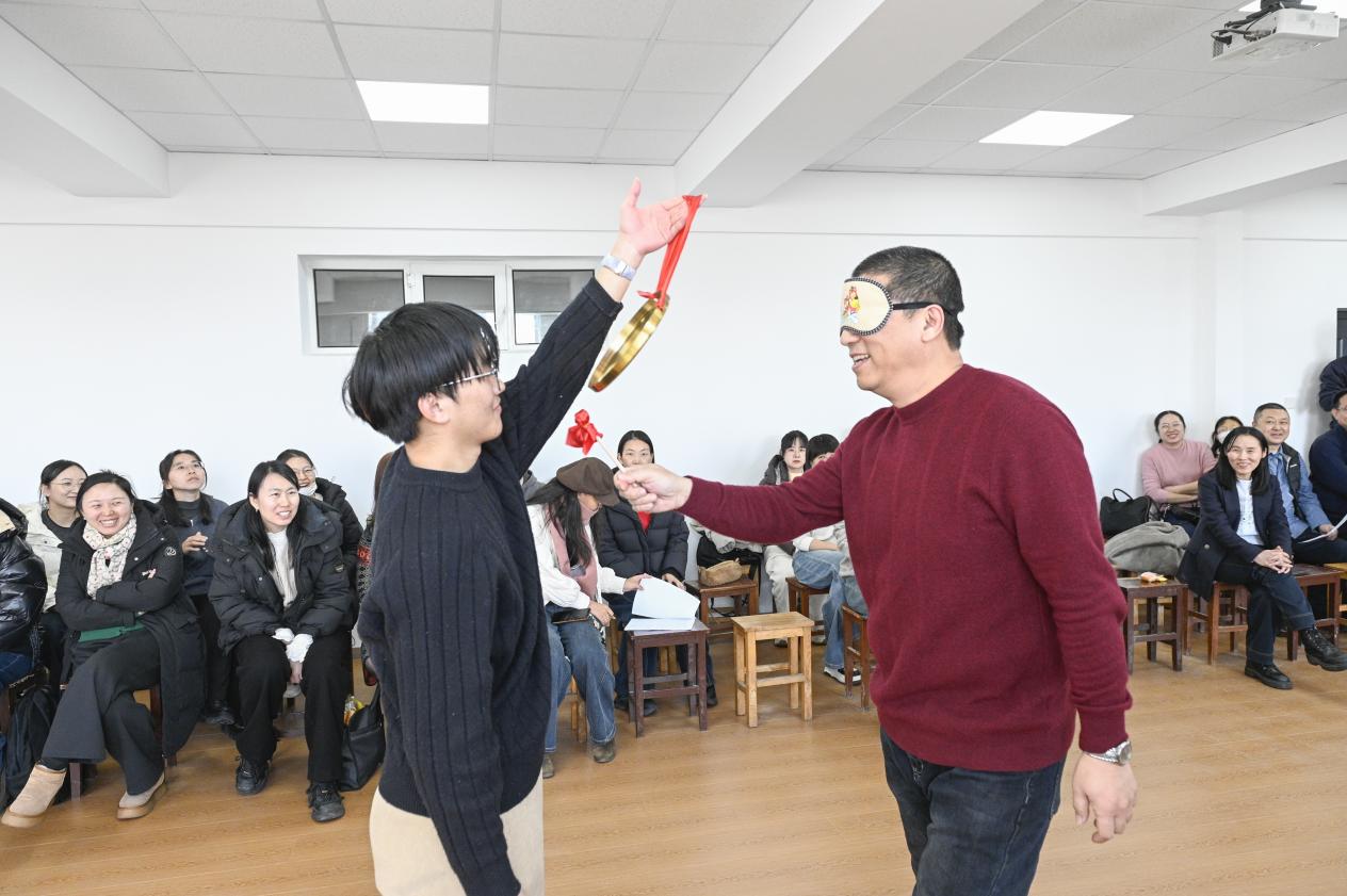 在趣味游戏的尾声,迎来了激动人心的颁奖环节。学院领导依次为活动中表现踊跃、积极参与的老师们颁发了精美纪念品,现场掌声与欢笑交织,气氛热烈。