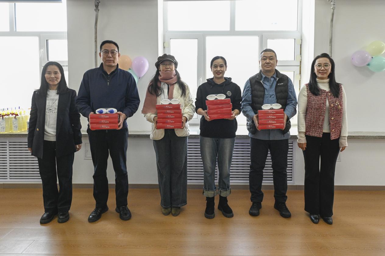 随后,进行活动第二项,理学院院长毕卉为教师们分发了精心准备的节日礼物。一份份精美的礼物承载着学院对教职工们的浓浓关爱和深深谢意。随后,理学院党委副书记王冰与副院长孟桂芝共同为积极参与活动的老师们颁发了奖项,现场气氛热烈,掌声不断。